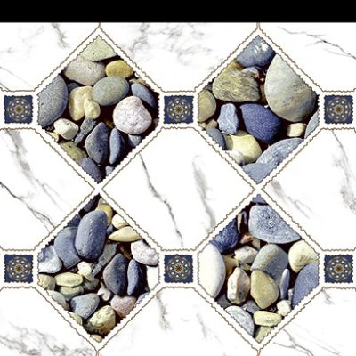 Textura: Visual com efeito marmorizado suave, combinado com módulos geométricos em losango e elementos ornamentais centrais