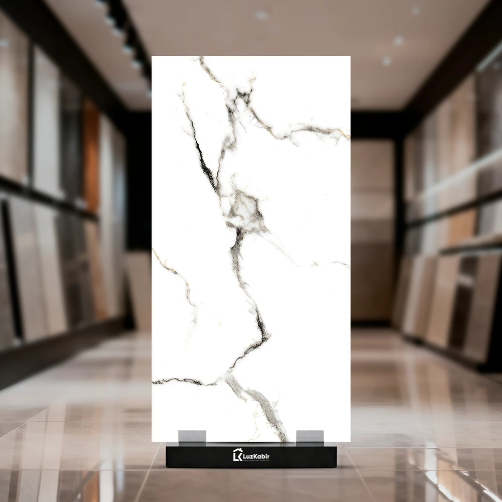 Textura: Visual marmorizado, com veios largos e orgânicos de contraste marcado
