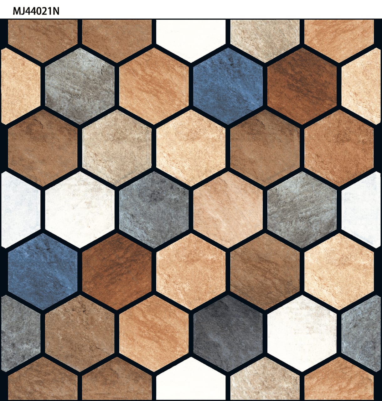 Textura: Padrão em hexágonos, com variação de cores e efeito pétreo, criando contraste marcado e ritmo visual forte entre as peças