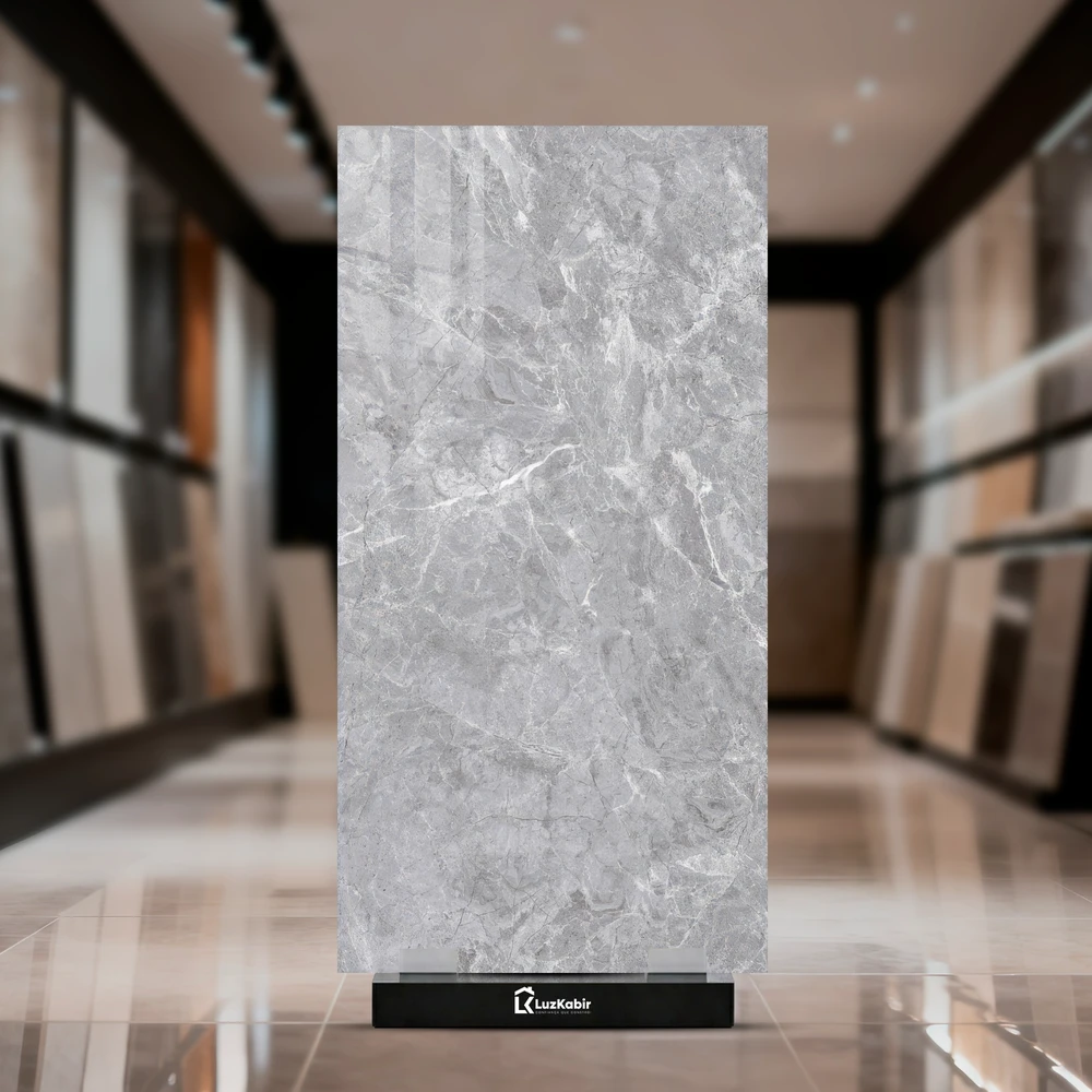 Cor: Cinza médio, cinza claro, veios cinza esbranquiçado