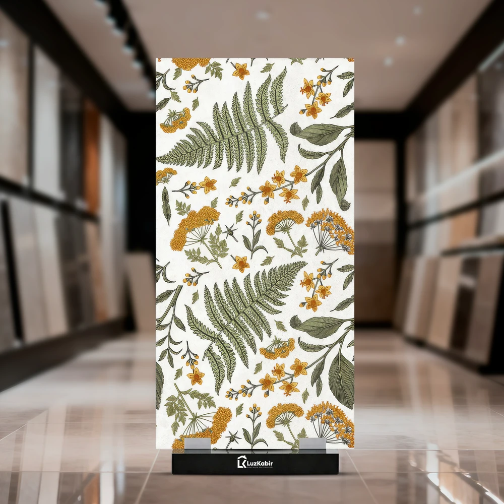 Cor: Branco, verde, amarelo, tons de verde-oliva