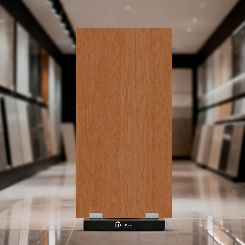 Textura: Superfície contínua com leitura de madeira natural, veios verticais finos e regulares, textura homogénea e variação tonal suave ao longo da peça