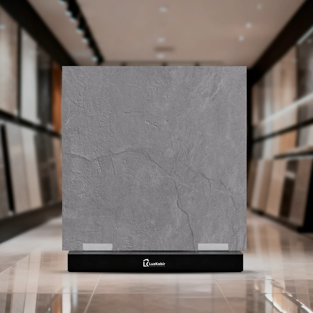 Textura: Superfície uniforme com textura mineral mais marcada, variação tonal difusa e microfissuras suaves, efeito de pedra contínua sem padrão definido