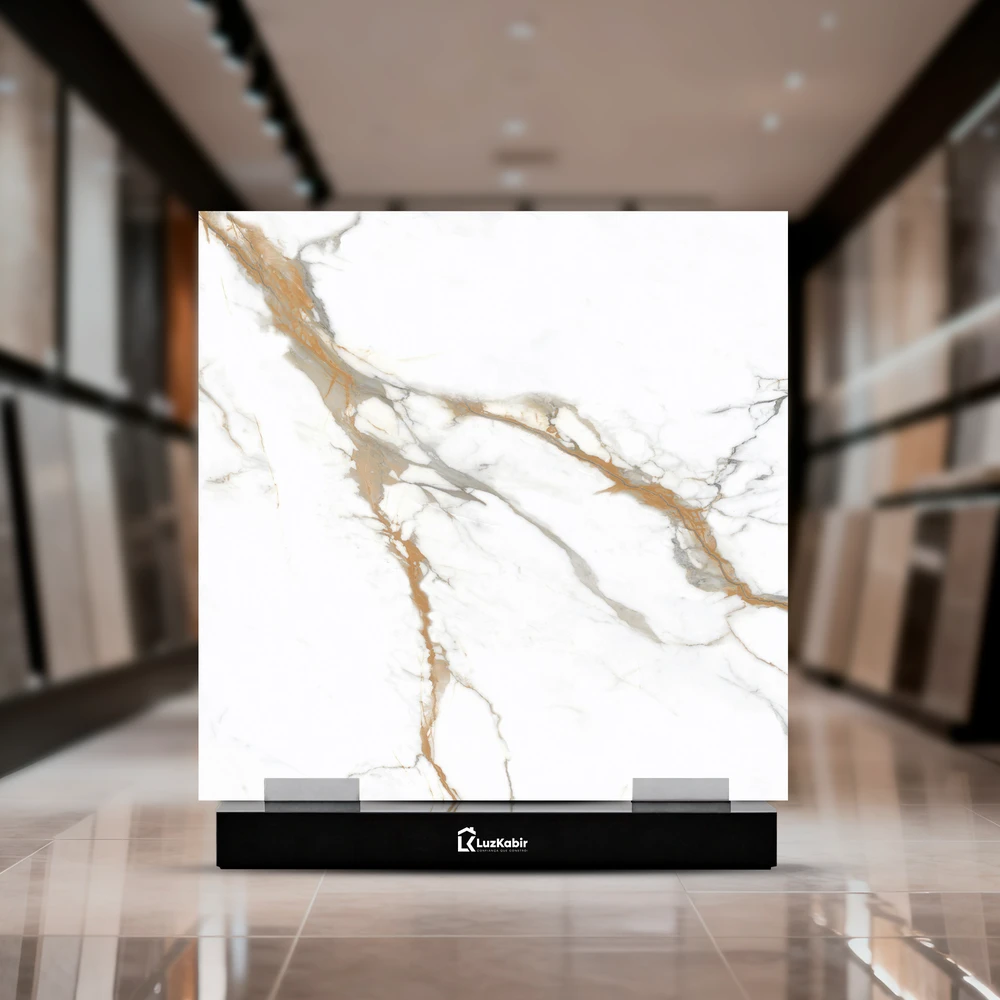 Cor: Branco, veios em tom bege amarelado e cinza claro