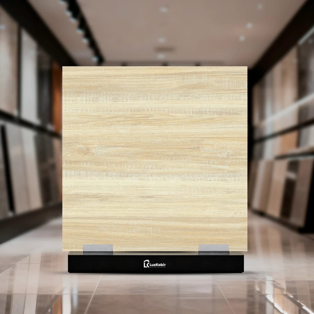 Cor: Bege claro amadeirado, com nuances de creme e veios suaves em tons de areia